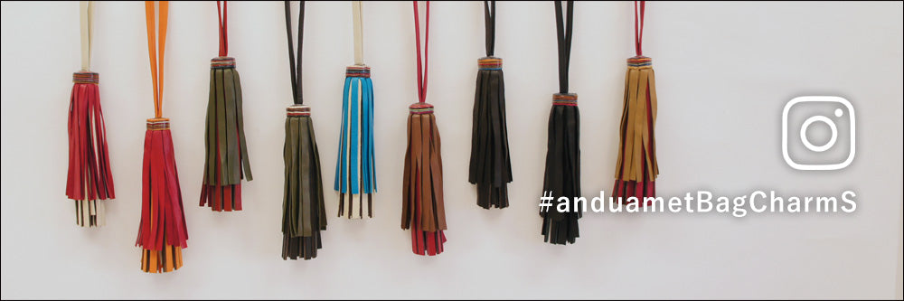 This charm can make our 'Hug' series bags more glamour with the same coloring. It can be attached to the handles of various shapes of bags, so you can match it to your bag and secretly enjoy the tecture of Ethiopian sheepskin. The mosaic decoration at the base of the charm is an accent with a motif of marquetry (wooden mosaic work, Yosegi in Japanese), which creates a andu amet's playfulness. This is a perfect for a small gift.