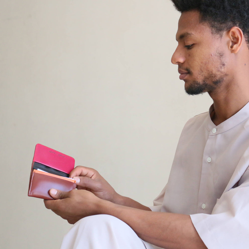 Andu amet’s products use original leather that is finished in a method -one that does not use coating with pigments, and instead is finished so that it is close to the original, leaving the natural texture of leather- to enjoy the texture and feeling of the finest Ethiopian sheepskin. This might leave color unevenness and small scratches, or cause color transfer and fading at times.