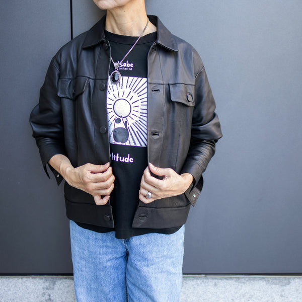 andu amet's first men's leather jacket was designed from the clothing line “Ultimate Essential,” which was started with the aim of creating “the ultimate piece of clothing that fills your heart and makes you feel like yourself, even if it's only one piece". The name “Celest” was inspired by the dynamism of the infinite expanse of the sky, its all-encompassing and generous presence, and its freedom to be unbounded by anything.”