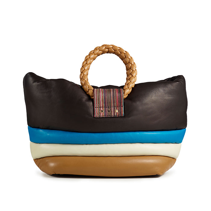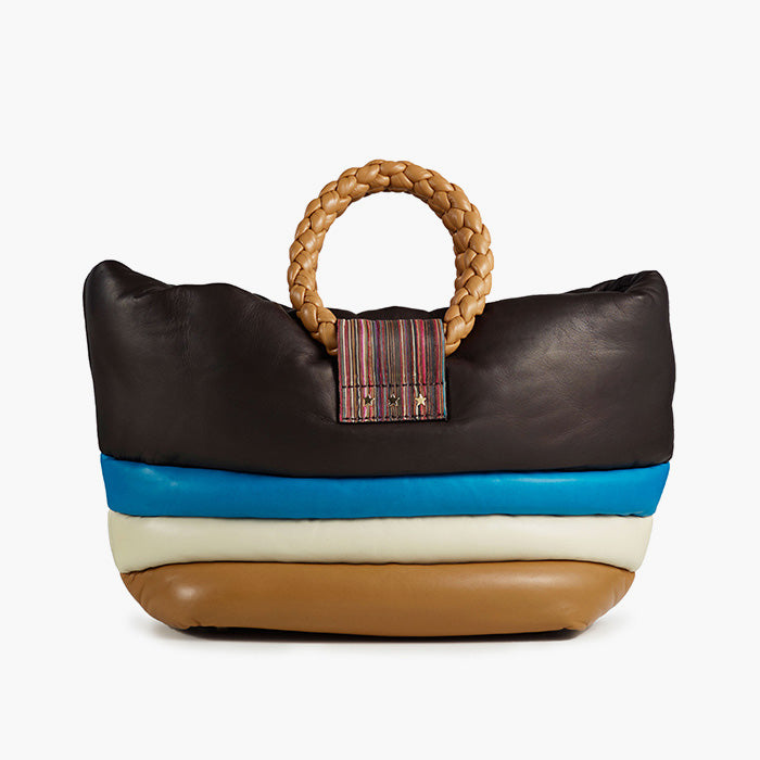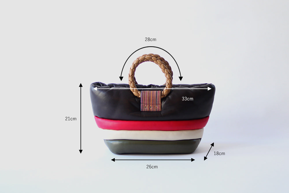 Our iconic stripe decoration called “Mosaic leather” is inspired by Japanese traditional craft “Yosegizaiku”. The fusion of artisan’s coloring sense in Ethiopia and traditional craft in Japan. There is no same coloring amongst the world. Addition to this, the handles are braided one by one.