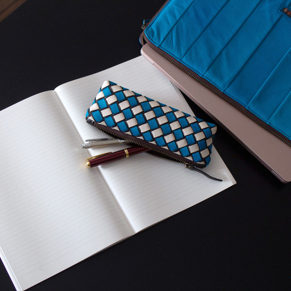 The artistic pen case has come out. The artisans weaved each leather with all their hearts. This will make you happy when you see and take it. The Ethiopian sheepskin is used not only for the surface, but also for the logo on the inside, and the haddle of the zipper . the more you use it, the more you can enjoy the texture of the leather.